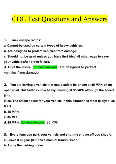 Read Online Test Questions And Answers Cdl Reader